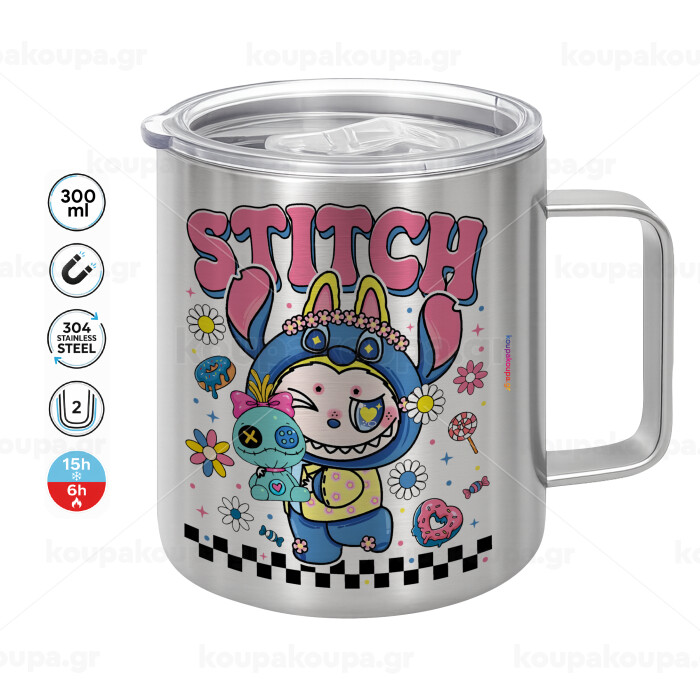Labubu Stitch, Mug Stainless steel double wall 300ml
