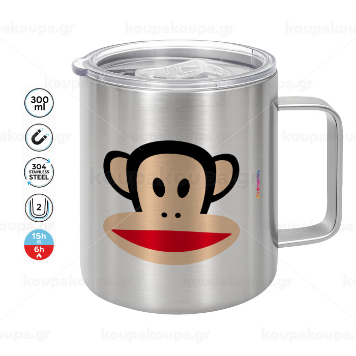 Stainless steel cup (300ml) with double wall of excellent quality. Suitable for hot and cold drinks. Hand wash recommended. The double wall keeps the temperature of the drink inside and allows you to embrace your drink.