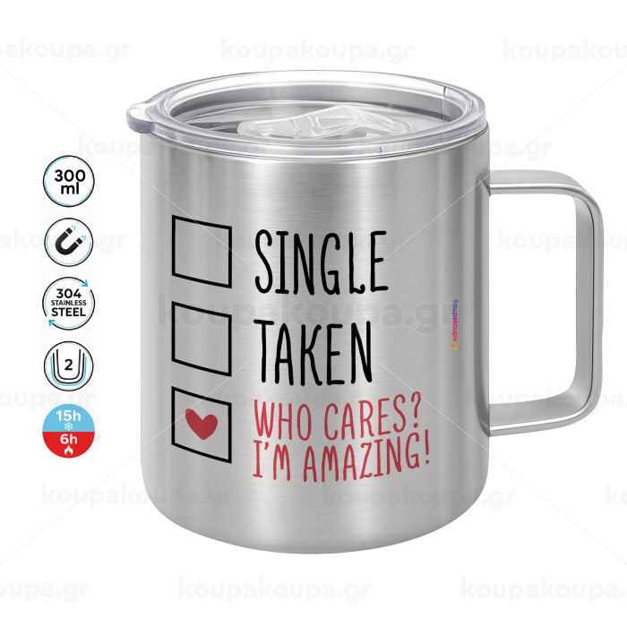 Single, Taken, Who cares i'm amazing, Mug Stainless steel double wall 300ml