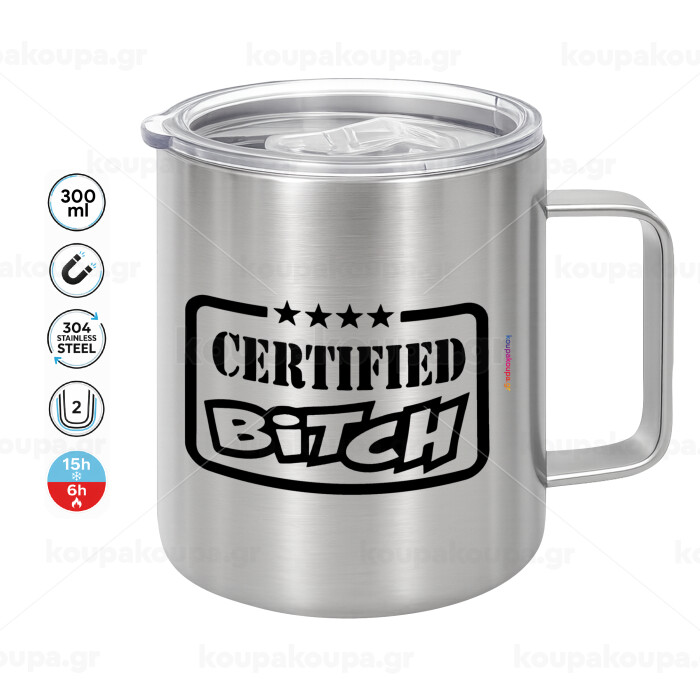 Certified Bitch, Mug Stainless steel double wall 300ml