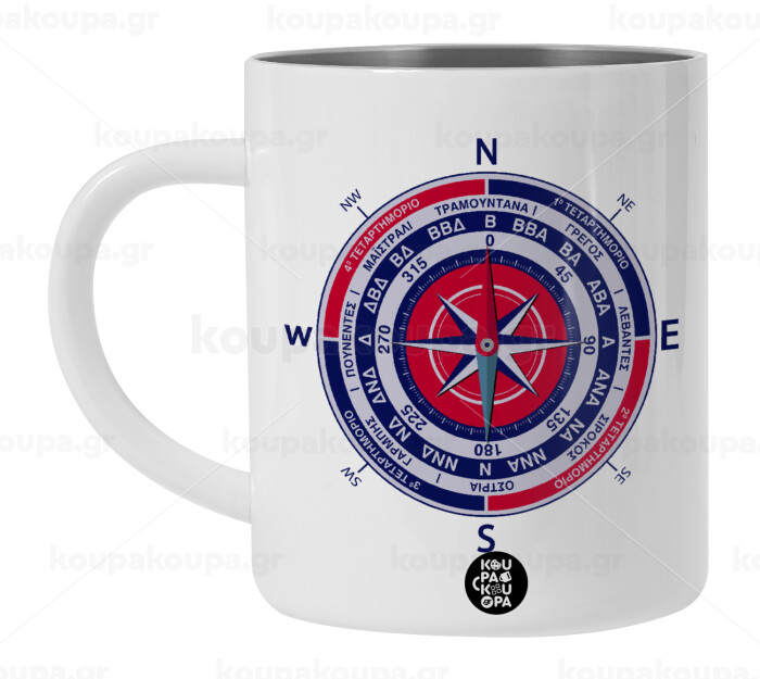 Wind compass, BIG Mug Stainless steel double wall (450ml, White)