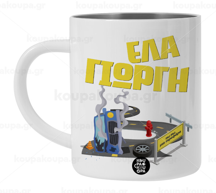 Έλα Γιώργη, πω πω μια στροφάρα, BIG Mug Stainless steel double wall (450ml, White)