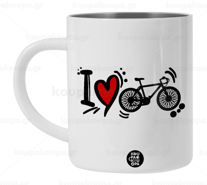 I love my bike, BIG Mug Stainless steel double wall (450ml, White)
