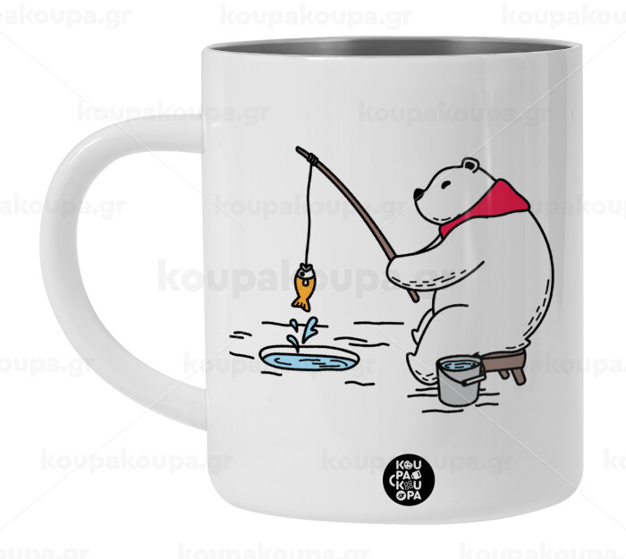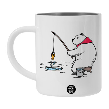 Bear fishing, BIG Mug Stainless steel double wall (450ml, White)