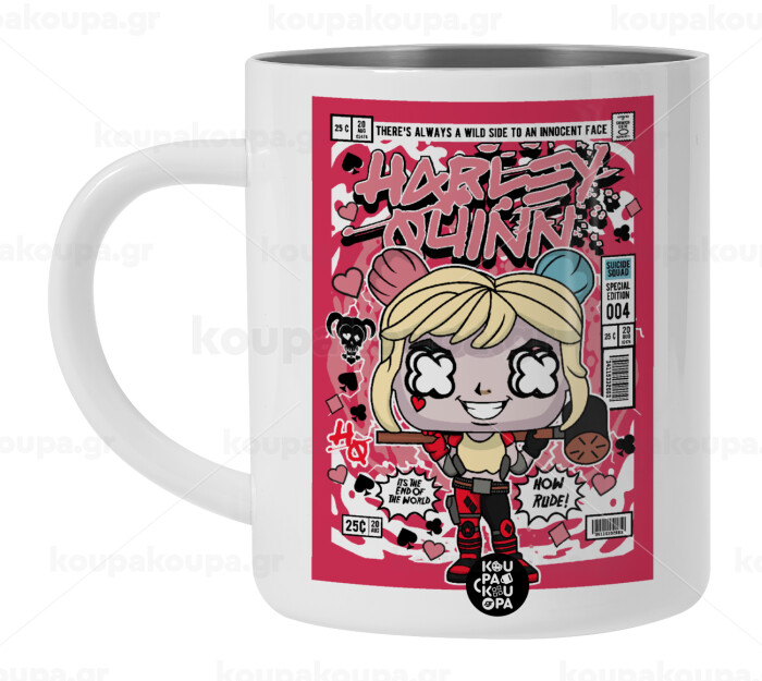 Harley Quinn (Χάρλεϊ Κουίν), BIG Mug Stainless steel double wall (450ml, White)