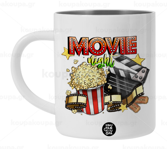 Movie night, BIG Mug Stainless steel double wall (450ml, White)