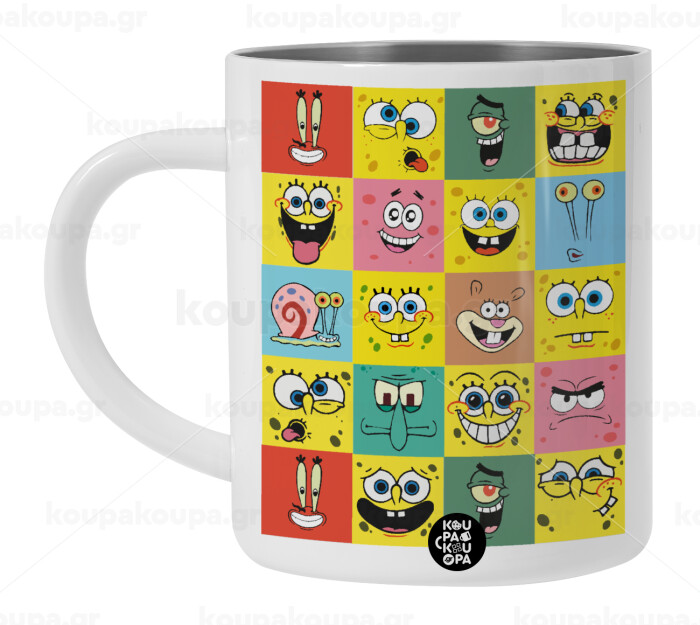 BOB spongebob and friends, BIG Mug Stainless steel double wall (450ml, White)