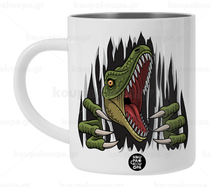 Dinosaur scratch, BIG Mug Stainless steel double wall (450ml, White)