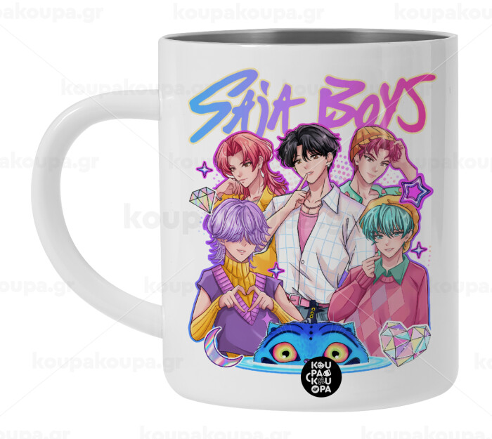 Huntrix Saja Boys, BIG Mug Stainless steel double wall (450ml, White)