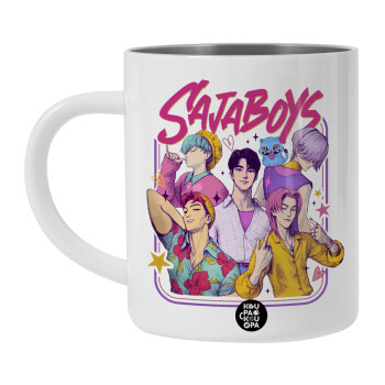 Huntrix Saja Boys, BIG Mug Stainless steel double wall (450ml, White)