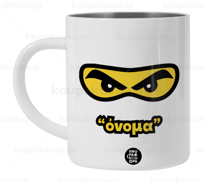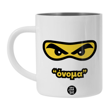 Ninja Eyes με όνομα, BIG Mug Stainless steel double wall (450ml, White)