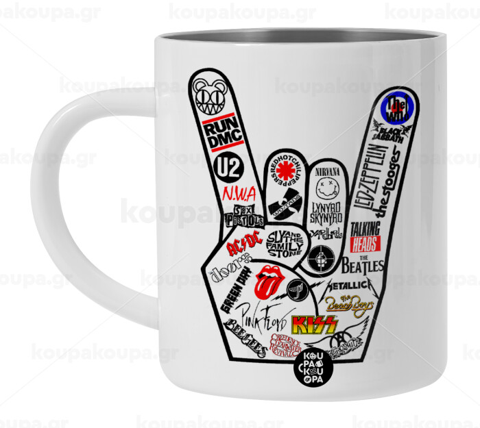Best Rock Bands hand, BIG Mug Stainless steel double wall (450ml, White)