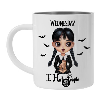 Wednesday Adams, i hate people, BIG Mug Stainless steel double wall (450ml, White)