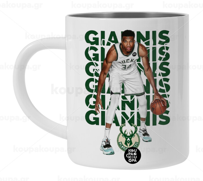 Giannis Antetokounmpo, BIG Mug Stainless steel double wall (450ml, White)