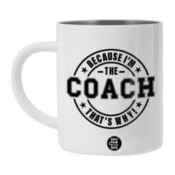 Because i'm the Coach, BIG Mug Stainless steel double wall (450ml, White)