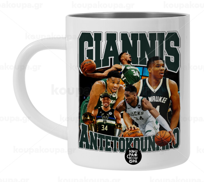 Giannis Antetokounmpo, BIG Mug Stainless steel double wall (450ml, White)