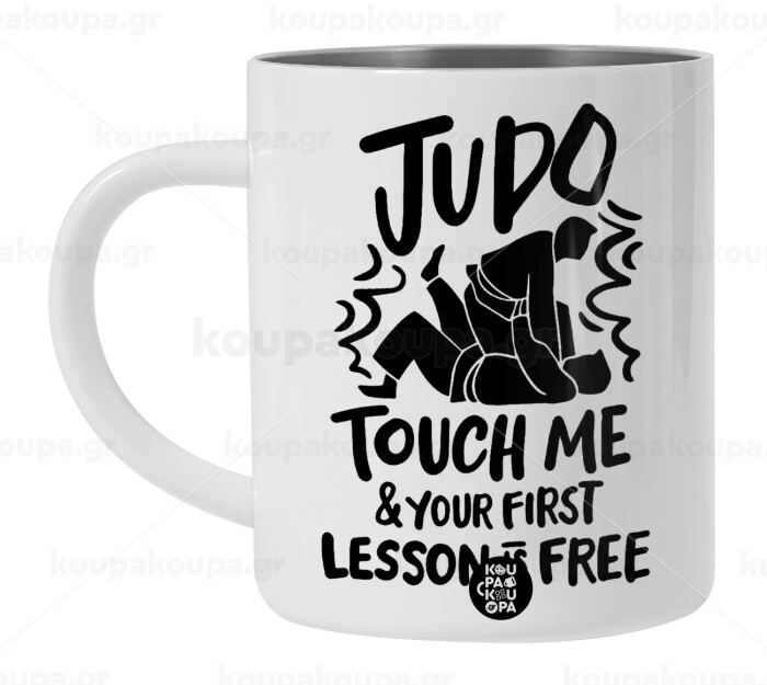 Judo Touch Me And Your First Lesson Is Free, BIG Mug Stainless steel double wall (450ml, White)
