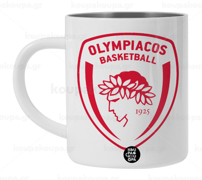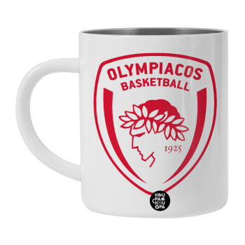 Olympiacos B.C., BIG Mug Stainless steel double wall (450ml, White)