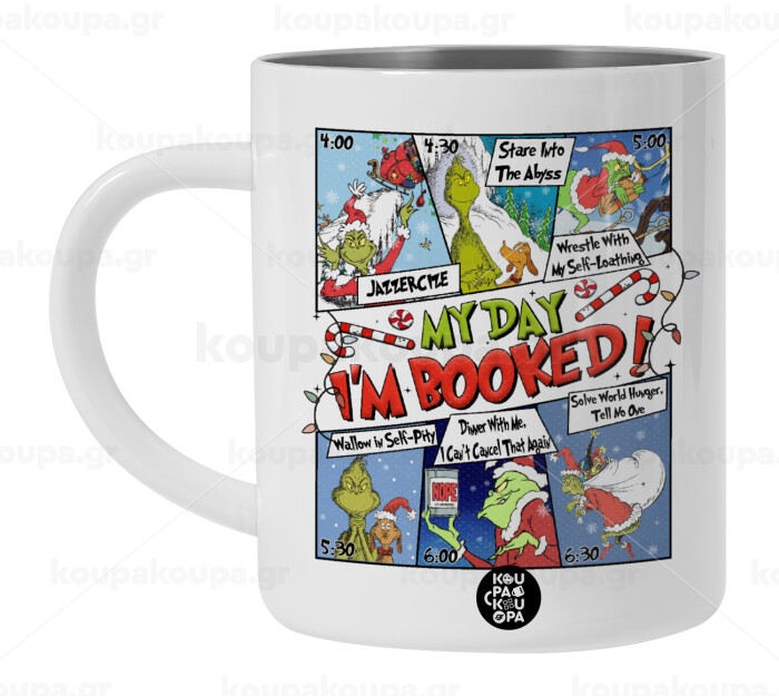 My Day Grinch, BIG Mug Stainless steel double wall (450ml, White)