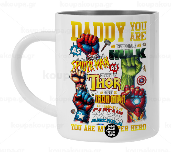 Daddy You Are my Hero, BIG Mug Stainless steel double wall (450ml, White)