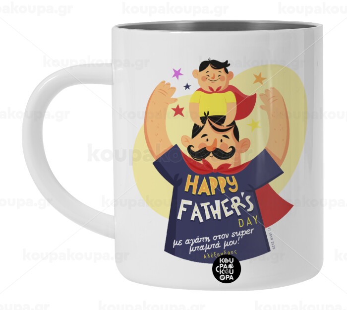 Happy Fathers Day με όνομα, BIG Mug Stainless steel double wall (450ml, White)