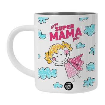 Στην SUPER μαμά μου, comic, BIG Mug Stainless steel double wall (450ml, White)