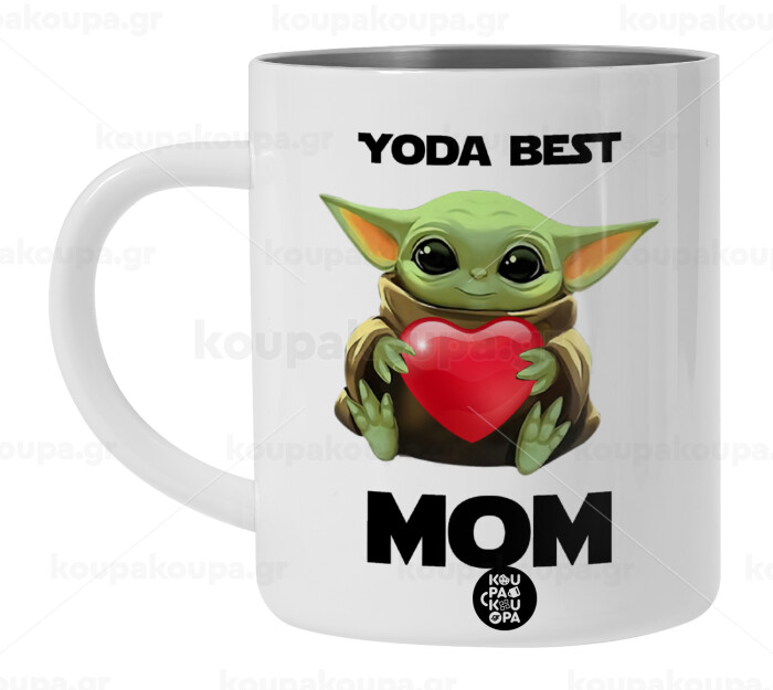 Yoda Best mom, BIG Mug Stainless steel double wall (450ml, White)