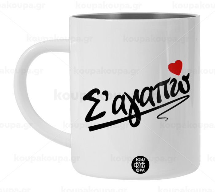 Σ΄ αγαπώ!!!, BIG Mug Stainless steel double wall (450ml, White)