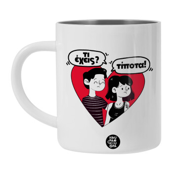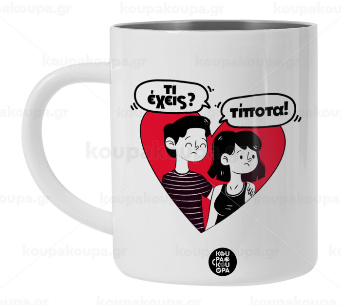 Τι έχεις? Τίποτα!, BIG Mug Stainless steel double wall (450ml, White)