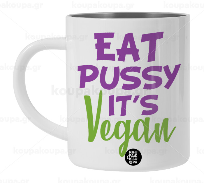 EAT pussy it's vegan, BIG Mug Stainless steel double wall (450ml, White)