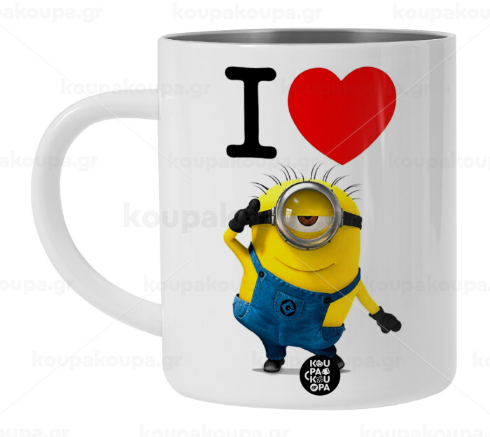 I love by minion, BIG Mug Stainless steel double wall (450ml, White)