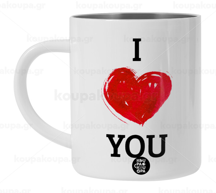I Love You, BIG Mug Stainless steel double wall (450ml, White)