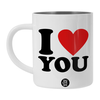 I LOVE YOU, BIG Mug Stainless steel double wall (450ml, White)