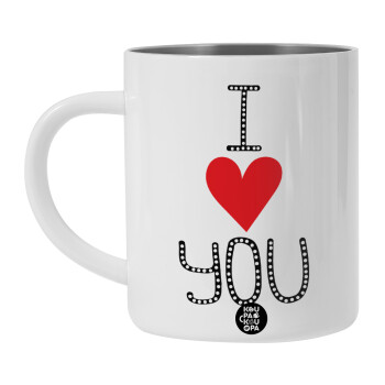 I Love You small dots, BIG Mug Stainless steel double wall (450ml, White)