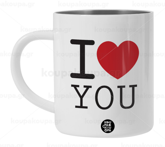 I Love you classic, BIG Mug Stainless steel double wall (450ml, White)