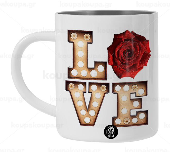 Love lights and roses, BIG Mug Stainless steel double wall (450ml, White)