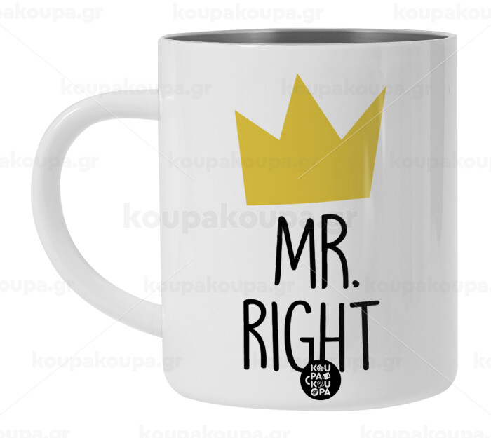 Mr right, BIG Mug Stainless steel double wall (450ml, White)