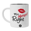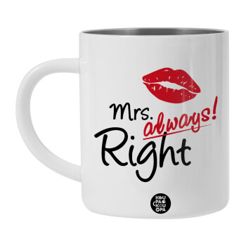 Mrs always right kiss, BIG Mug Stainless steel double wall (450ml, White)