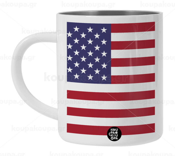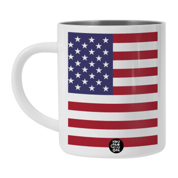 USA Flag, BIG Mug Stainless steel double wall (450ml, White)