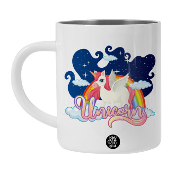 Μονόκερος, BIG Mug Stainless steel double wall (450ml, White)
