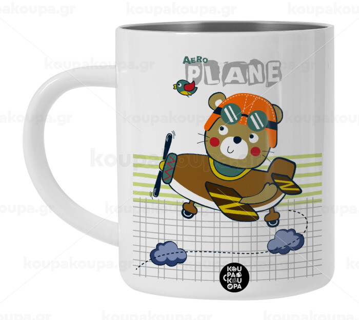 Kids Plane, BIG Mug Stainless steel double wall (450ml, White)