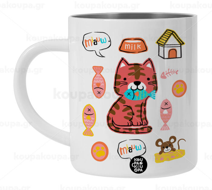 Cats and Fishes, BIG Mug Stainless steel double wall (450ml, White)