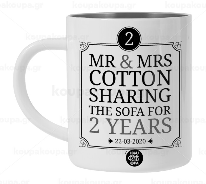 Mr & Mrs Sharing the sofa, BIG Mug Stainless steel double wall (450ml, White)