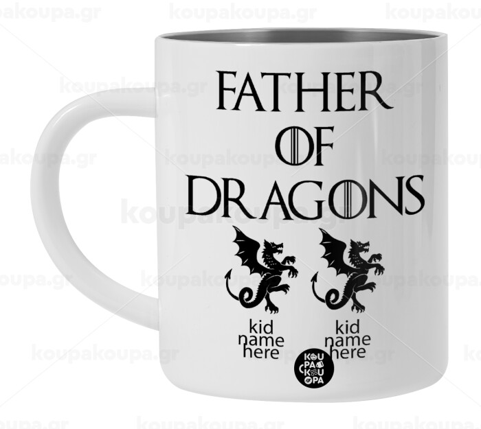 GOT, Father of Dragons (με ονόματα παιδικά), BIG Mug Stainless steel double wall (450ml, White)