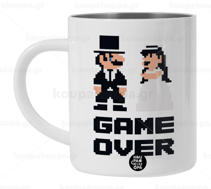 8bit Game Over Couple Wedding, BIG Mug Stainless steel double wall (450ml, White)
