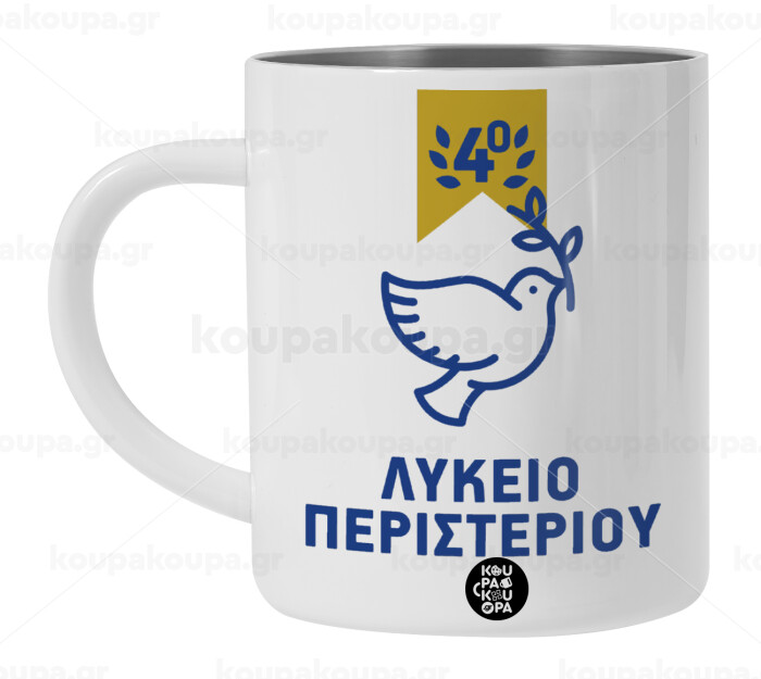 Έμβλημα Σχολικό μπλε/χρυσό περιστέρι, BIG Mug Stainless steel double wall (450ml, White)