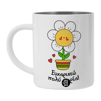 Ευχαριστώ πολύ κυρία!!!, BIG Mug Stainless steel double wall (450ml, White)