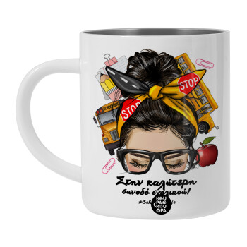 Στην καλύτερη συνοδό σχολικού!, BIG Mug Stainless steel double wall (450ml, White)