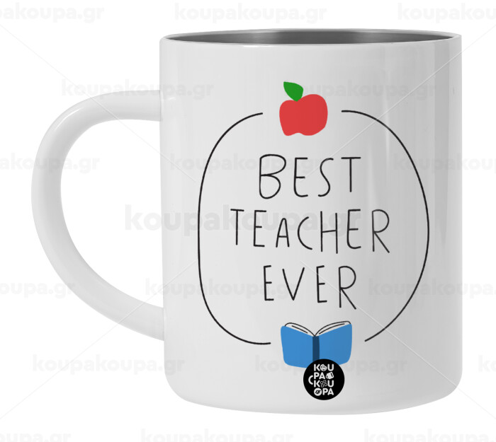 Best teacher ever, BIG Mug Stainless steel double wall (450ml, White)