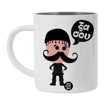 Κρητικός "Ξα σου", BIG Mug Stainless steel double wall (450ml, White)